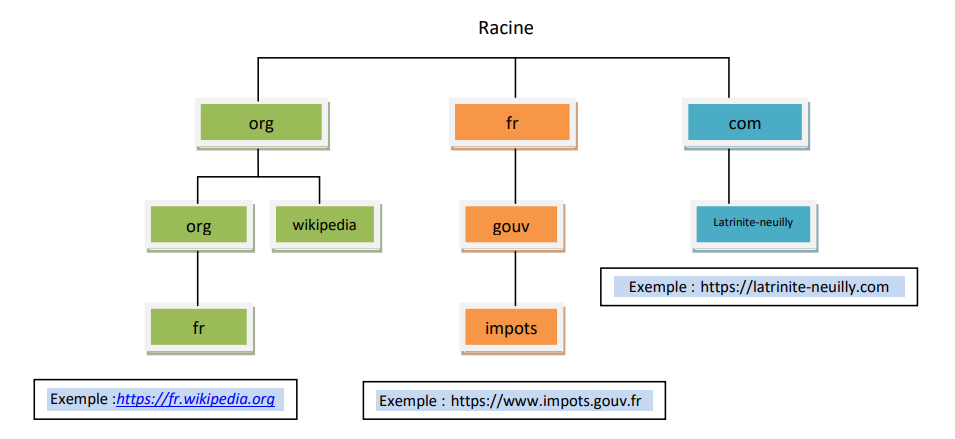 Un nom de domaine se décompose en plusieurs parties. Prenons l’exemple suivant : https://eplefpah-78.fr Chaque partie est séparée par un point(.).